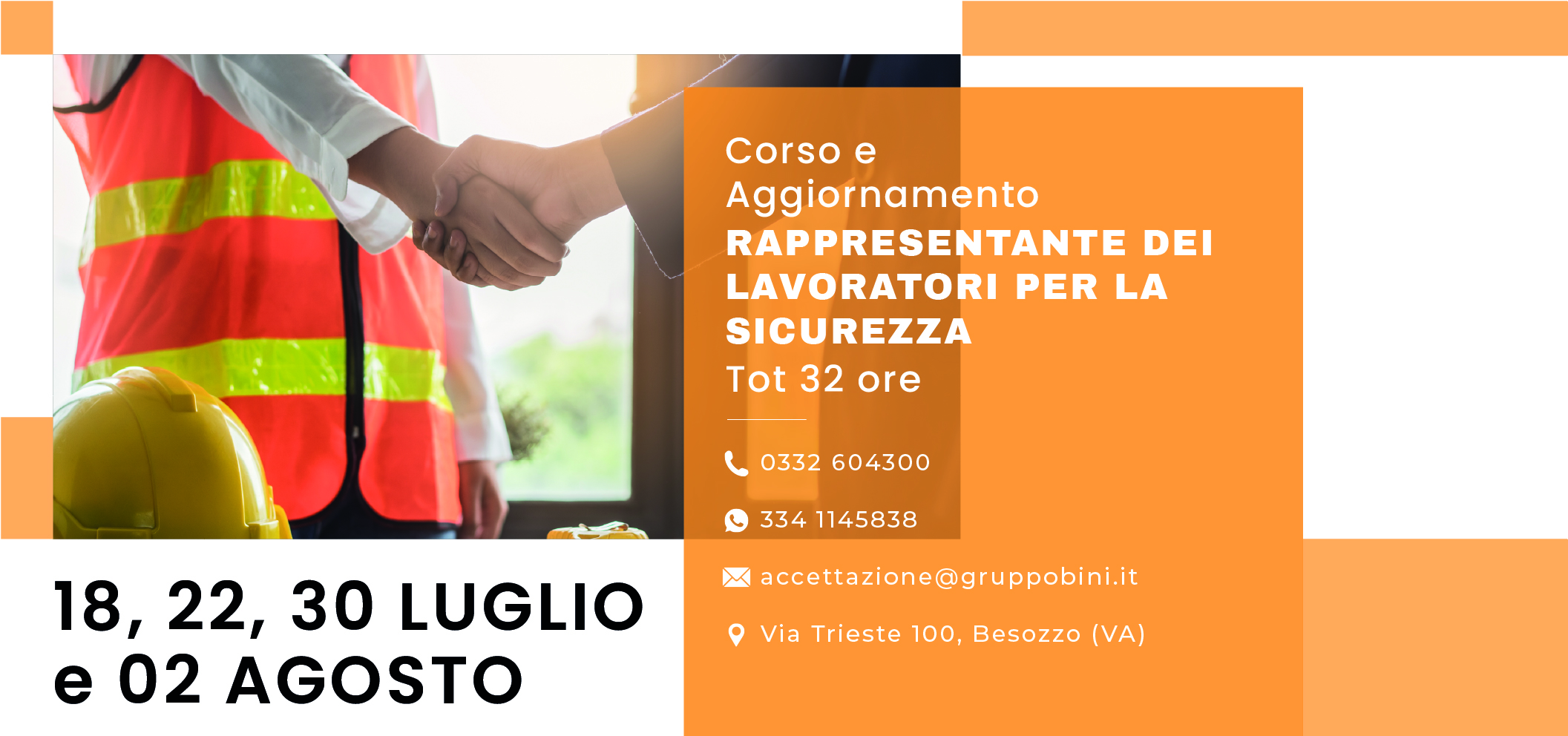 Rappresentante dei Lavoratori per la Sicurezza (RLS) - 18-22-30 luglio e 2 agosto 2024